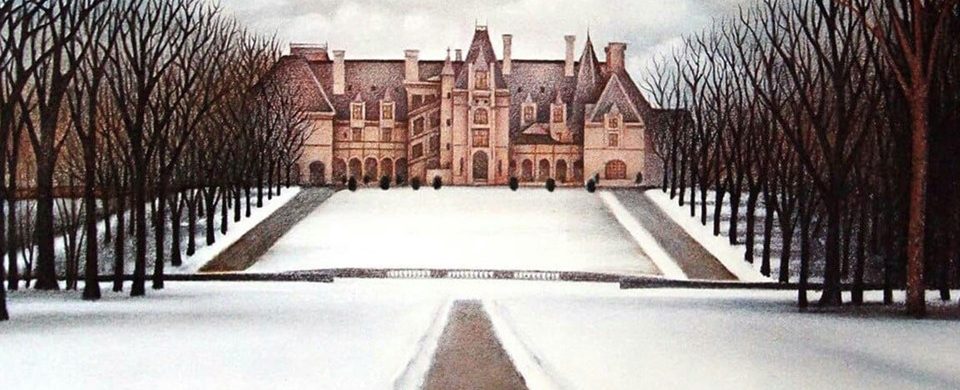 Enjoy the peace and quiet of a snowy landscape painted in watercolor.