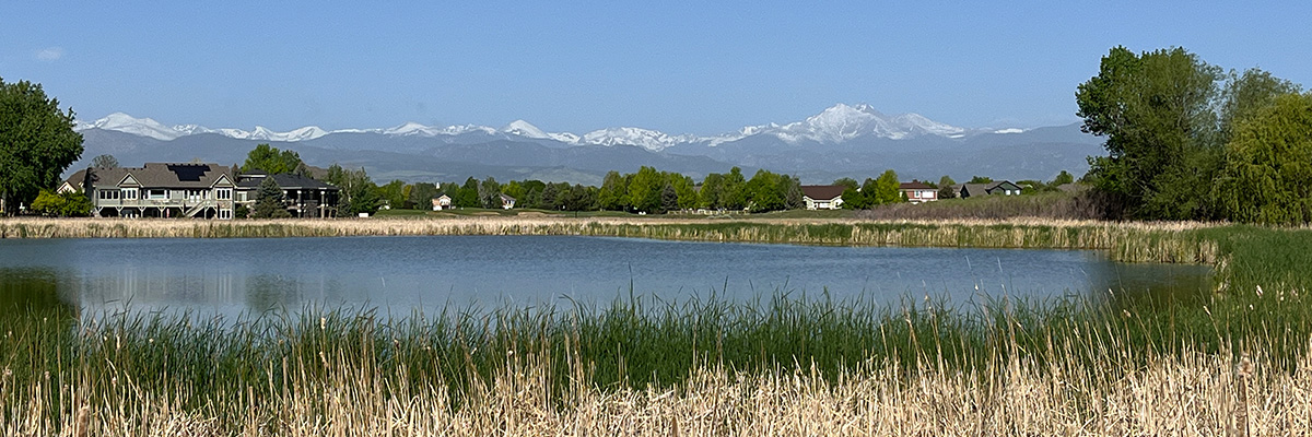 Originally developed in 1976, the Jim Hamm Nature Area comprises 24 acres, including a 14-acre pond. This land was donated in 1974 by the Hamm family in memory of USAF Captain Jim Hamm who was shot down over Vietnam in 1968 and to honor all St. Vrain Valley Veterans who fought in that war. Jim spent his youth exploring and appreciating the wild environment that once was part of his grandfather’s farm (Elmer Montgomery). The pond at the site is a designated bird sanctuary that welcomes a variety of waterfowl throughout the year. The panoramic vista of the Front Range as seen from the area is illustrated on a panel located on the view deck over the pond.