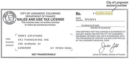 - The City of Longmont account number on your sales tax license.