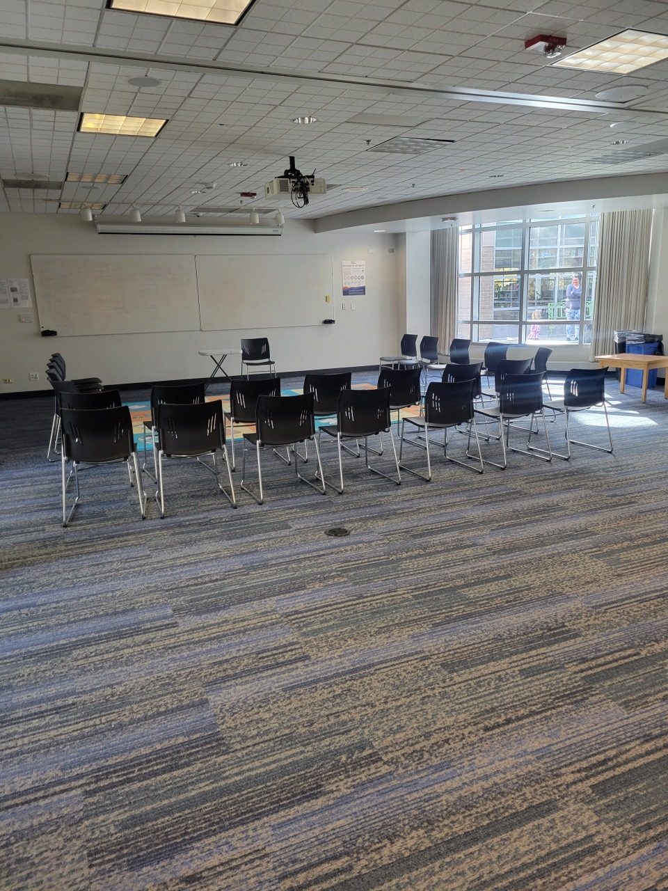 • The rooms have whiteboards; markers and erasers are available to borrow.