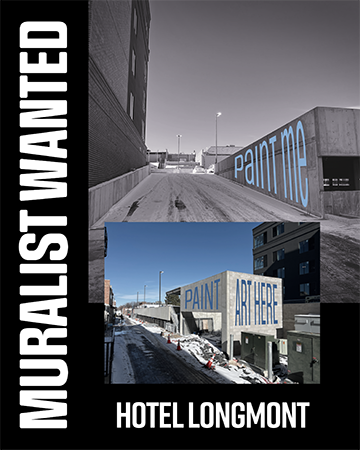 The City of Longmont’s Art in Public Places (AIPP) program in partnership with Longmont Downtown Development Authority (LDDA) and Longmont Creative District seeks to commission an artist or a team of artists to create a site-specific public mural artwork directly across from the City of Longmont Civic, adjacent to the new Hotel Longmont (508 3rd Ave, Longmont, CO 80501) off the alley west of Kimbark Street in the heart of the Longmont Creative District in downtown Longmont.