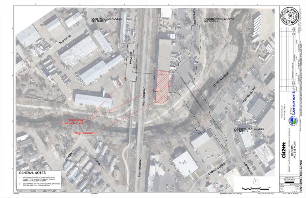 This flight is being conducted to obtain post-site condition imaging for water line replacement work that was recently completed along St. Vrain Creek.