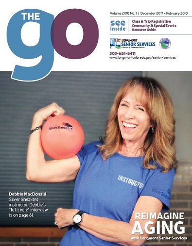 Senior Center Staff: Debbie MacDonald is a Silver Sneakers fitness instructor and meditation class attendee at the LSC. She is our first brave soul in our “Get to know the Senior Center” series. Debbie, you’re pictured on the front cover of this quarter’s GO Catalog. Even though it seems like you’ve only been with us a few months, your story with the Senior Center actually goes back much further, doesn’t it?