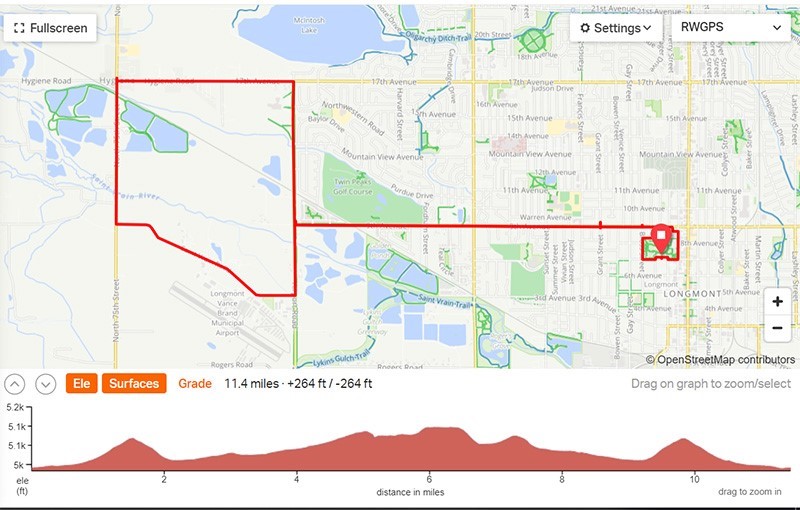This 12-mile ride has many options, and with only two small inclines, is doable for the beginner rider. If you’ve never been to Hygiene, some of the highlights include Pella Crossing, which features ponds, a lake and trails, and local places to stop for a refreshment and bathroom break. This ride offers bike lanes on all sections except St. Vrain Road, which is a low stress road; if you time it right, you will have no wind heading into Hygiene and will have a tailwind to help you on the “climb” back into Longmont. Enjoy the ride!