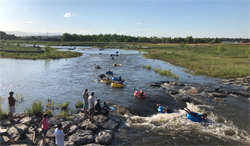 A new float course (also referred to as a tubing course or kayak course) was created during the creek channel work on the Resilient St. Vrain project. The course is made up of nine smaller rock fall areas that help keep water (and floaters) moving downstream. This course can accommodate tubes, kayaks or small boats (non-motorized only).