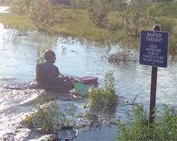 Enter the float course at the designated open water access point east of Main Street. Exit the course at designated takeout points east of Martin Street or at the 119th Street trailhead. The access and takeout points are designated by signs.