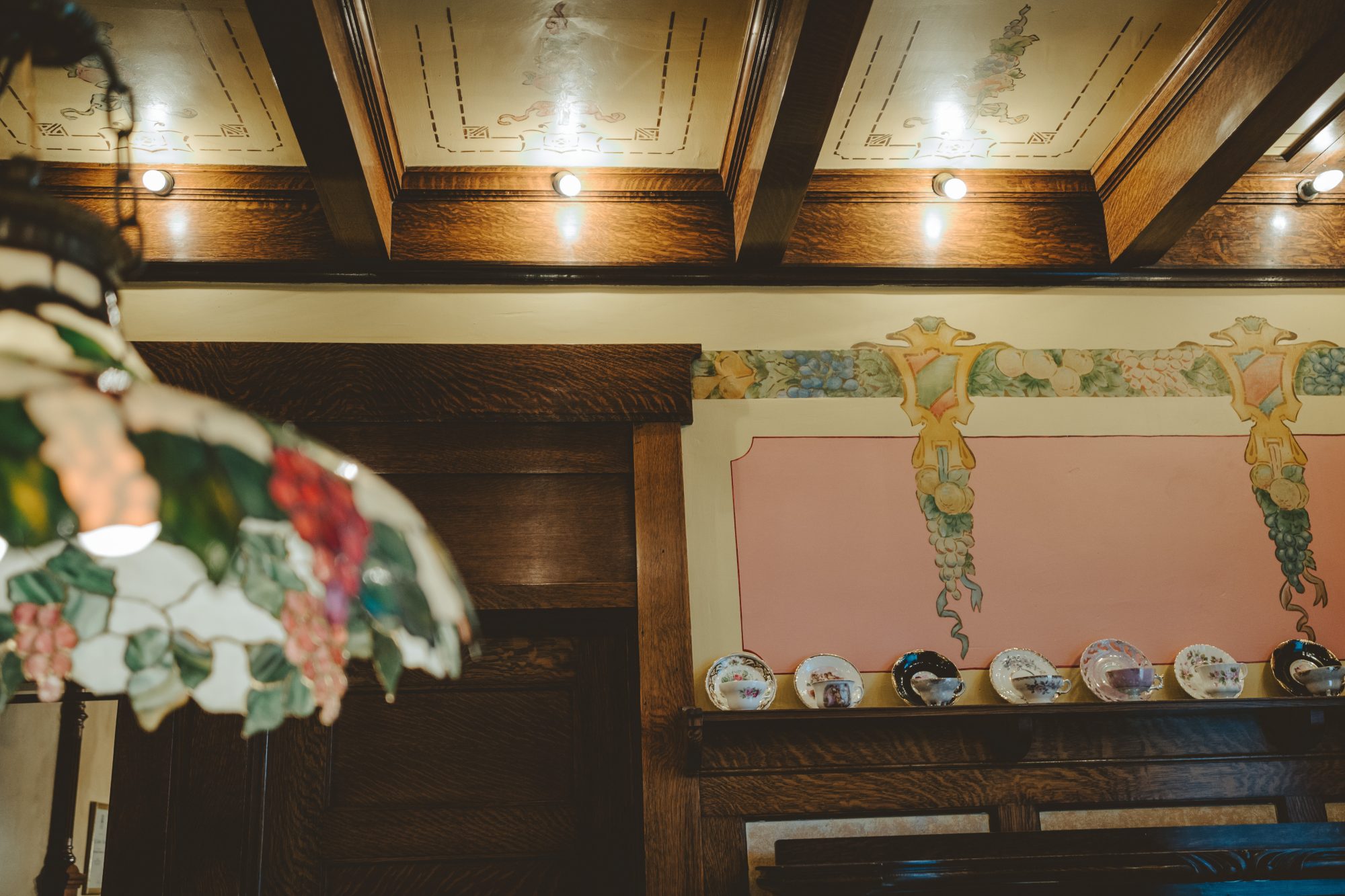 The final phase of the transformation was carried out by interior designers from Chicago including ceiling plaster, floral and fruit wall paintings, ornate carved woodwork and parquet inlaid designs in the floors and hallways.