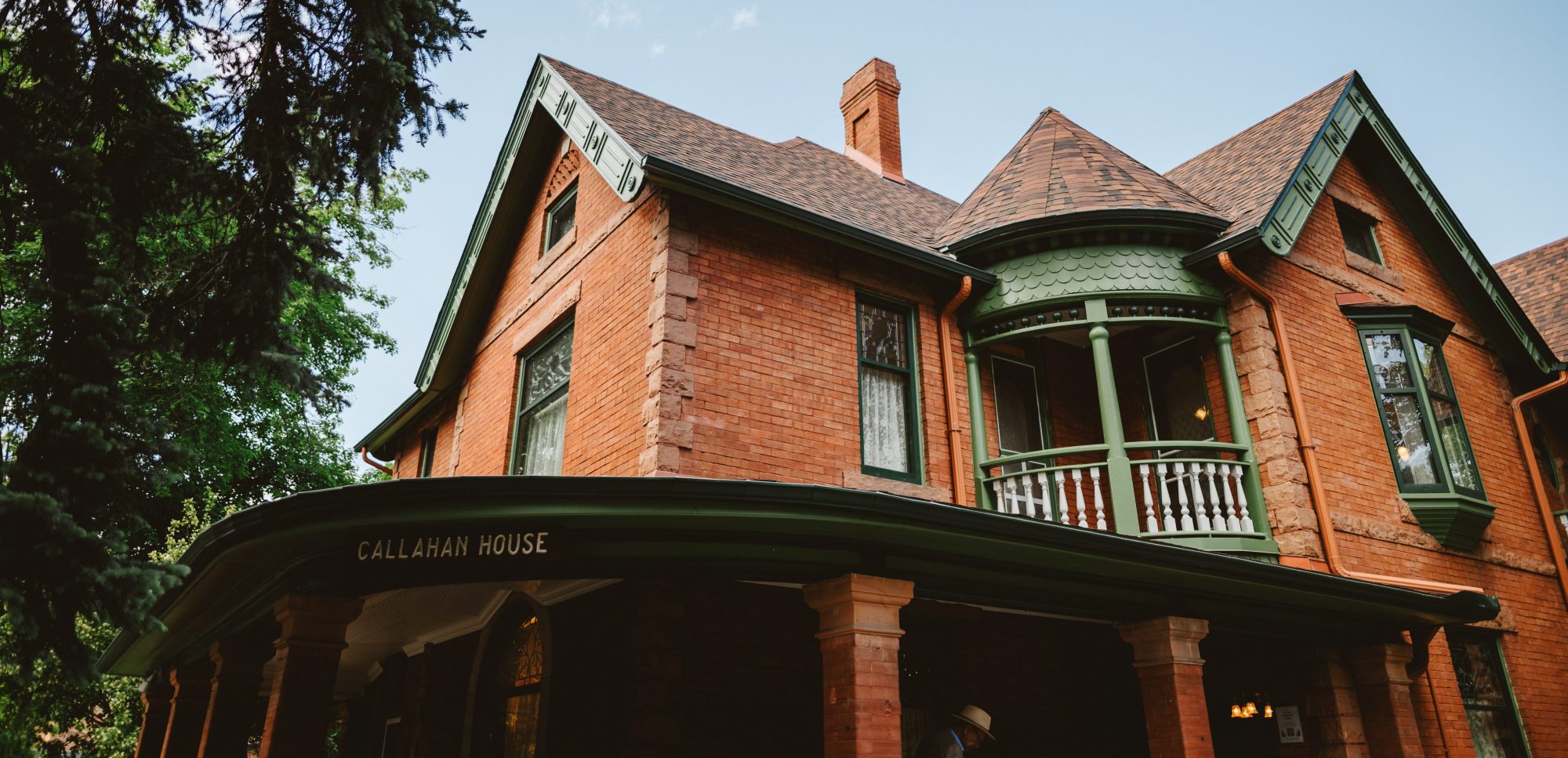 The Callahan House was built in 1892 by James Wiggins for James K. Sweeny. The two-story red brick structure, detailed with Lyons red sandstone corners and sills, had four rooms on each floor and a full basement.