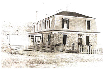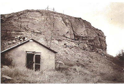 Sandstone Ranch House was built around 1880. This is how it looked before the stucco was put on the walls, which were built of Fox Hills Sandstone. The stone was quarried from the bluffs right out back.