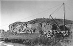 A view of what became known as Secor’s Quarry, looking northwest with the Sandstone Ranch house in the distance. You can see the boom that was used to load stone onto wagons, and later, rail cars.