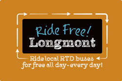 You can enjoy buzzing about town for free – all day, every day! Ride Free Longmont provides unlimited trips on Longmont’s local buses at no charge to riders. No cards, passes, or ID are needed to ride the local routes. Ask for a transfer and receive credit towards the fare on RTD regional bus routes. The program is paid for through the City’s Street Fund.