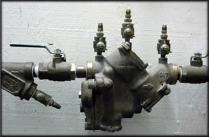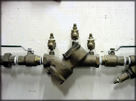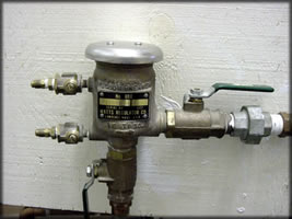 Used on health hazards in buildings and is a combination of check valves and an air inlet allowing water from the private system to vent when City pressure drops.